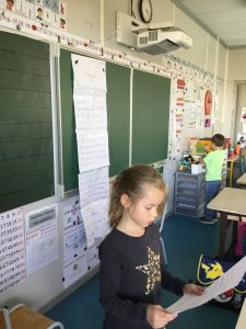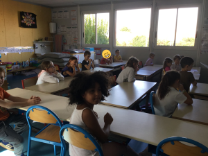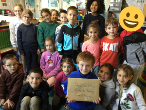 Cette année, ils sont 22 élèves : 10 CP et 12 CE1! Ils ont deux maitresses. Nous avons lu leur première lettre qui était accompagnée d’une photo.