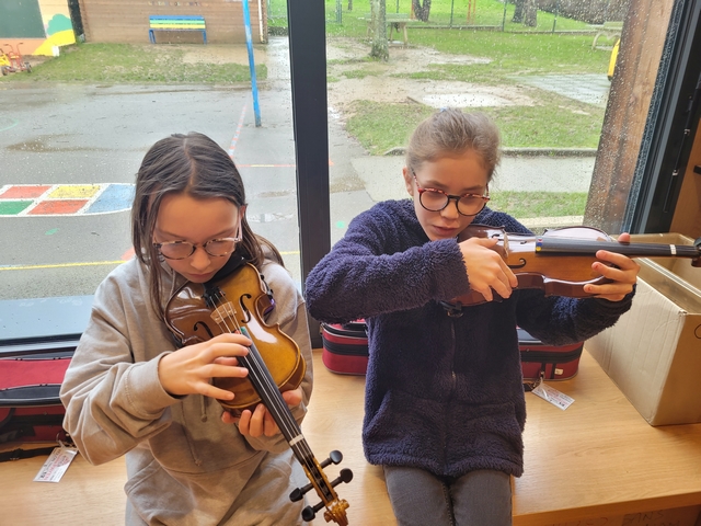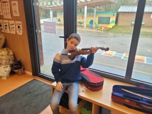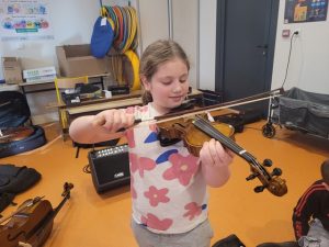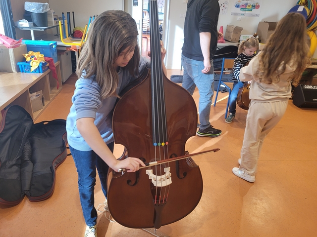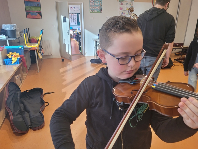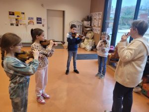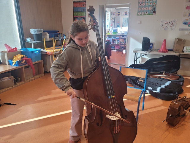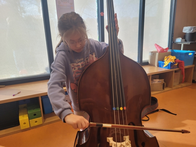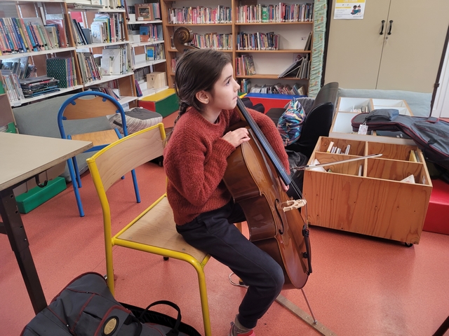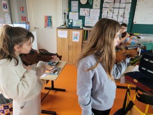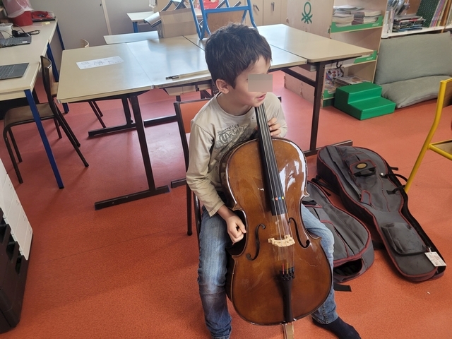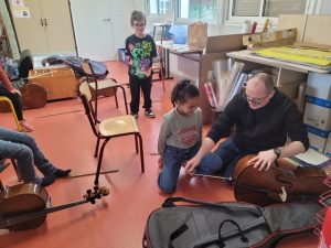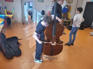Mardi 3 février, Emmanuel est arrivé de l’école de musique avec quelques instruments à notre taille pour que nous puissions les tester. Chacun a pu essayer la contrebasse, le violoncelle, l’alto et le violon. A la fin de la séance, nous avons fait des vœux sur les instruments que nous souhaitions pratiquer.