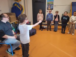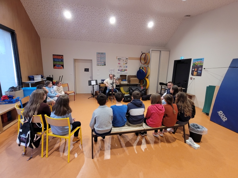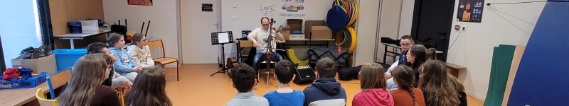 Au cours de la 5ème séance qui sera la semaine prochaine, les élèves vont pouvoir essayer les 4 instruments à cordes découverts avec Emmanuel et en choisir un. Ensuite, un instrument sera prêté à chaque élève pour 2 mois. Pendant 7 séances, les professeurs de l’école de musique de ces 4 instruments à cordes viendront travailler en petit groupes avec les élèves.