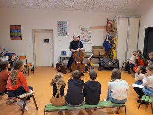 -La découverte et l’écoute d’un instrument à cordes : le violon, l’alto, la contrebasse et le violoncelle.