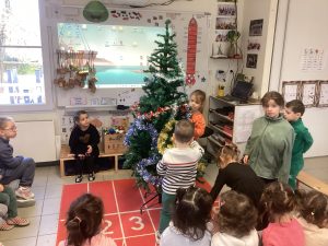 Décembre est arrivé et les fêtes de fin d’année approchent ! Jeudi dernier, les maternelles ont décoré le sapin de la classe. Aujourd’hui, c’était atelier cuisine à la maternelle. Les MS ont préparé une recette de pain d’épices que nous avons dégusté l’après-midi avec les autres élèves de la classe. Miam tout le monde s’est régalé ! La recette est ici pour ceux qui voudraient la reproduire à la maison :