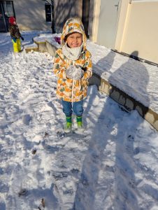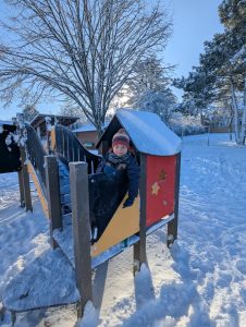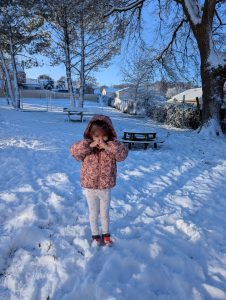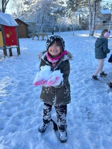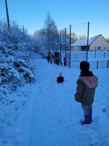 « J’ai aimé faire des batailles de boules de neige et de la luge grâce à Ambre et j’ai aussi aimé faire le bonhomme de neige avec toute la classe. » (Cali)