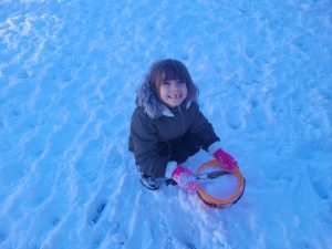 « J’ai aimé l’après-midi quand on a fait des batailles de neige avec les dames de la cantine. J’ai aussi aimé lancé des boules de neige sur Isabelle, elle était toute mouillée, on aurait dit un bonhomme de neige ! Je n’ai pas aimé le début de la journée car j’ai eu trop froid aux mains et aux pieds ! » (Elena)