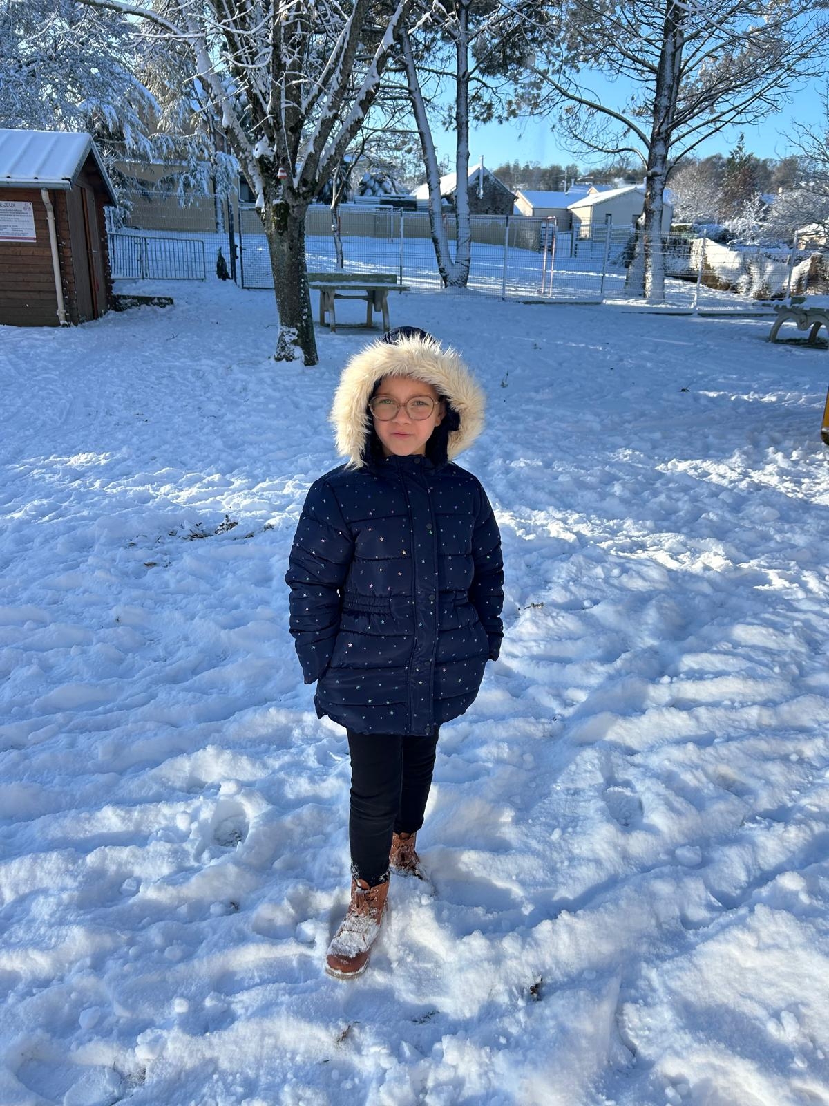 « J’ai aimé faire des batailles de boules de neige et de la luge grâce à Ambre et j’ai aussi aimé faire le bonhomme de neige avec toute la classe. » (Cali)